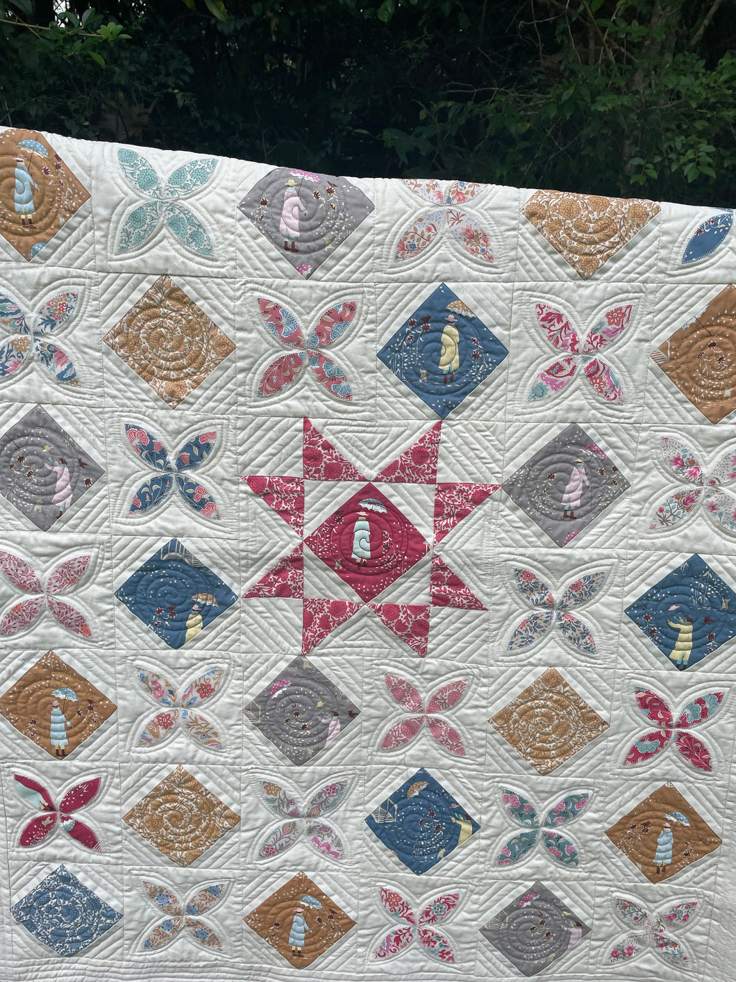 A great design to use up those small pieces of special fabrics. A great stash buster quilt pattern. The pattern instructions are clear and easy to follow. This quilt could also look great in a modern style or also lovely for a baby or child. A very versatile design.