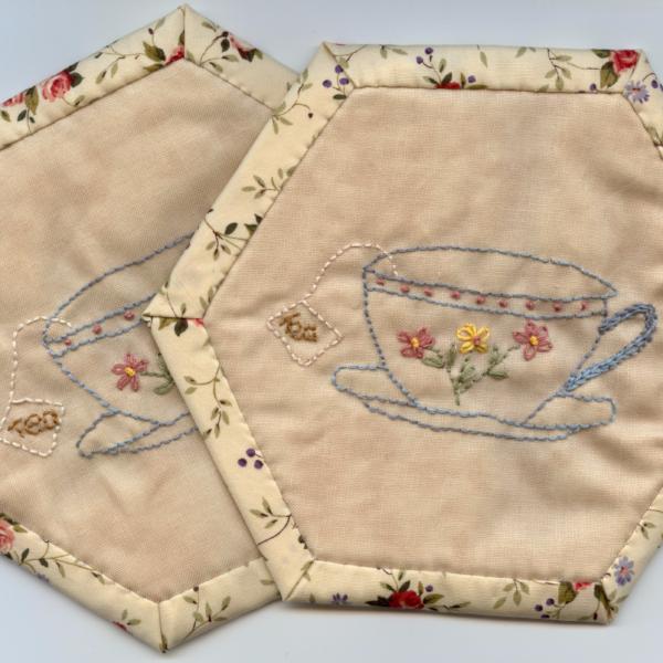 This lovely mug mat is very simple to make. Just make one or a as many as you need. This pattern is great to use up small fabric scraps. Embroidered Tea Cup Design. Easy to follow instructions.
