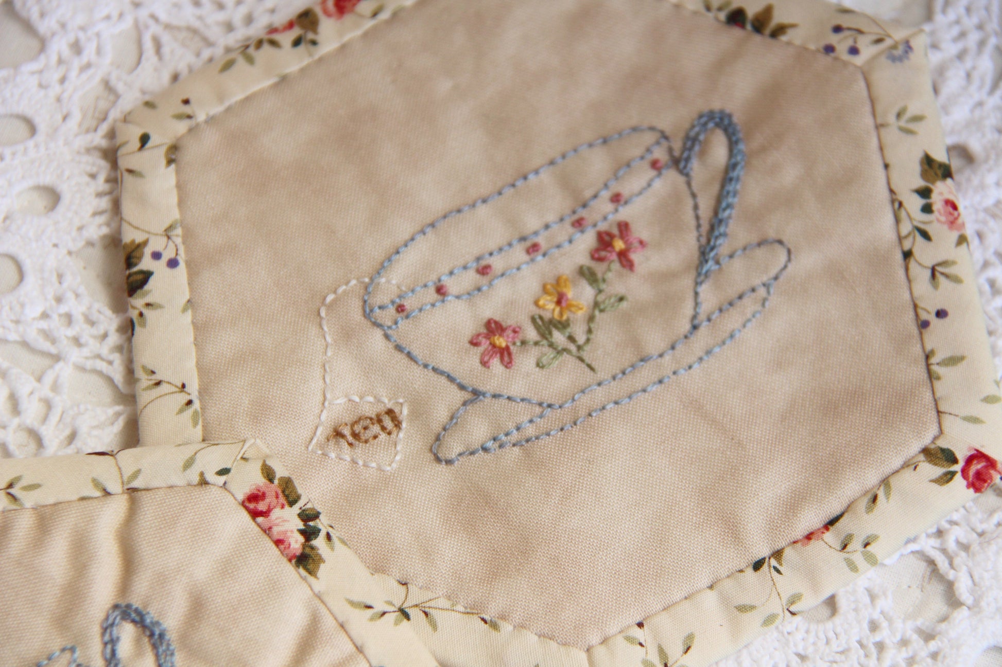 Tea Time Mug Mat Coaster PDF Pattern - Embroidery Pattern- Tea Cup Mat- Coffee Mug Mat- Drink Coaster