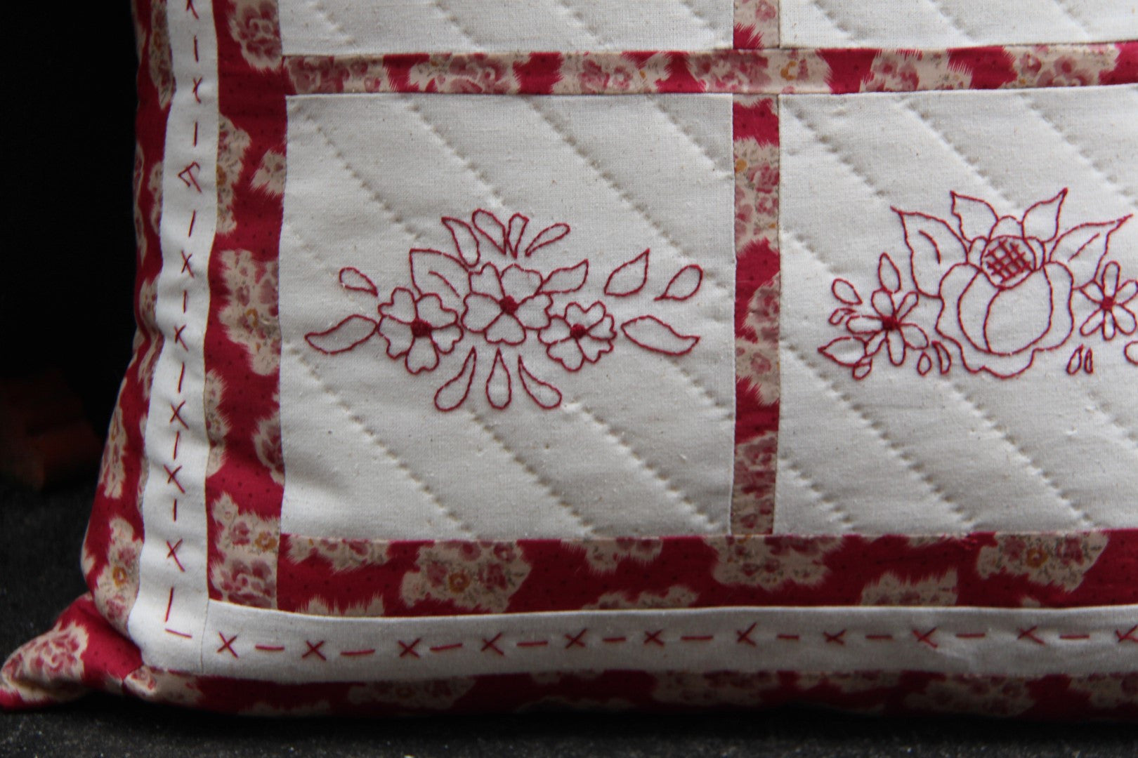 The floral embroidery designs use simple embroidery stitches. A quick and easy project. Also included are instructions to make up the design into a stitchery. Instructions to make the cushion are include in the pattern. A stitchery swag is also included.